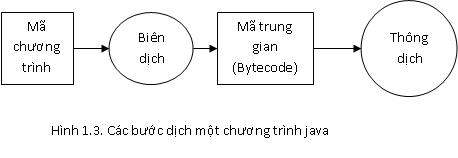 Như vậy, để thực hiện một chương trình Java ta cần trải qua hai bước: Bước 1: Biên dịch chương trình Java thành một dạng mã Trung gian, được gọi là mã Bytecode.