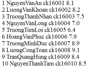 1 file lưu trữ thông tin sinh viên có nội dung như hình dưới: