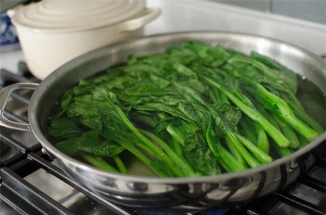 Khi luộc không nên để ít nước vì sẽ khiến rau bị thâm đen. Thay vào đó, các bà nội trợ nên cho một lượng nước vừa đủ để luộc rau, cho thêm chút muối để rau được xanh hơn.
