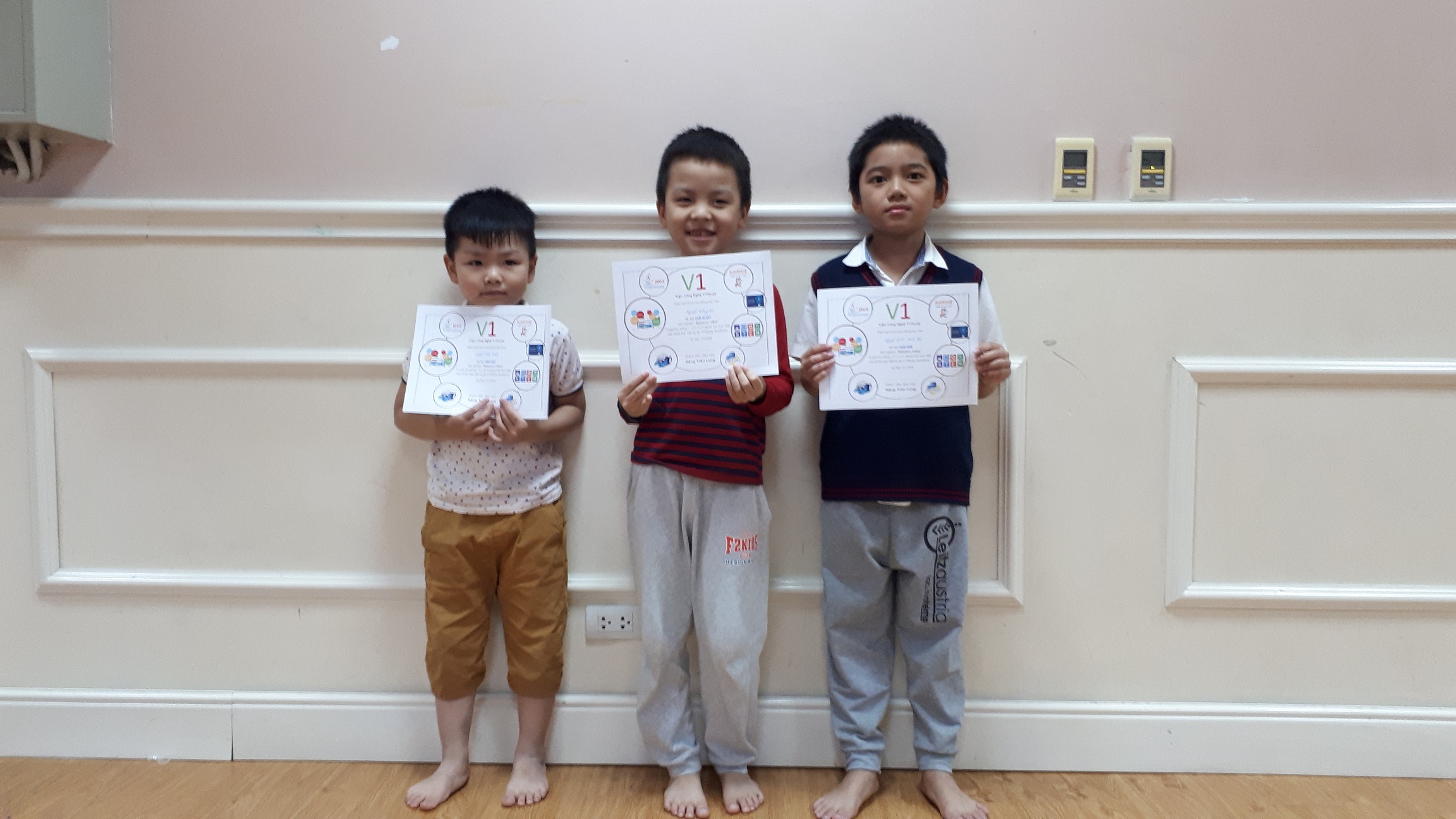 Trong 3 bạn đạt giải cao nhất thì 2 bạn đứng bên trái năm nay mới 6 tuổi và các con đã thể hiện được những tố chất cực tốt với robot và công nghệ